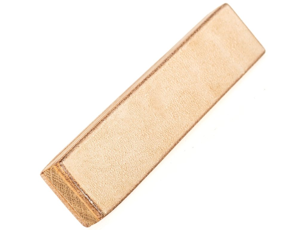 Použitá koža je hrubá asi 3,5 mm a jej povrch je pekne hladký. Pretože je koža pripevnená k drevenej doštičke, povrch remeňa zostáva rovný a to uľahčuje honovanie.