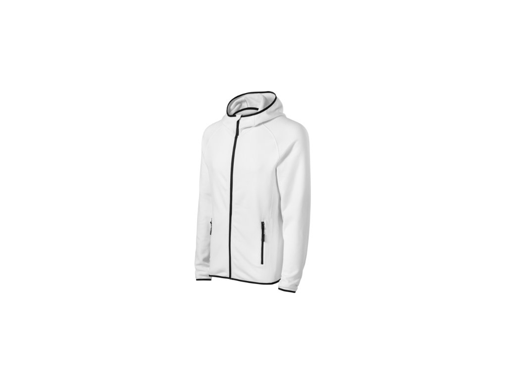 hladký strečový rýchloschnúci materiál, ideálny pre šport a pohybové aktivity, rovný strih s bočnými dielmi, celozapínací reverzný špirálový zips, kapucňa s krytkou brady, vnútorný priekrčník začistený páskou, raglánové rukávy, vrecká na zips, lemovanie elastickým pásikom, tvarovaný a mierne predĺžený zadný diel, kontrastné prvky (okrem farby 01), etiketa v podobe odnímateľnej nálepky