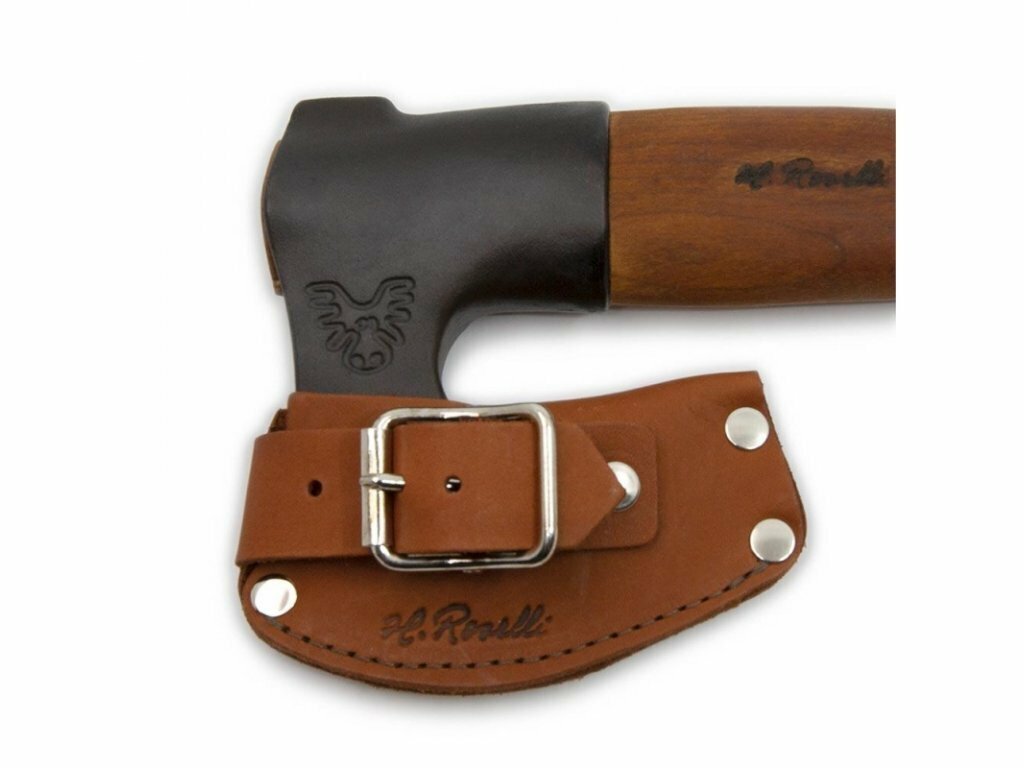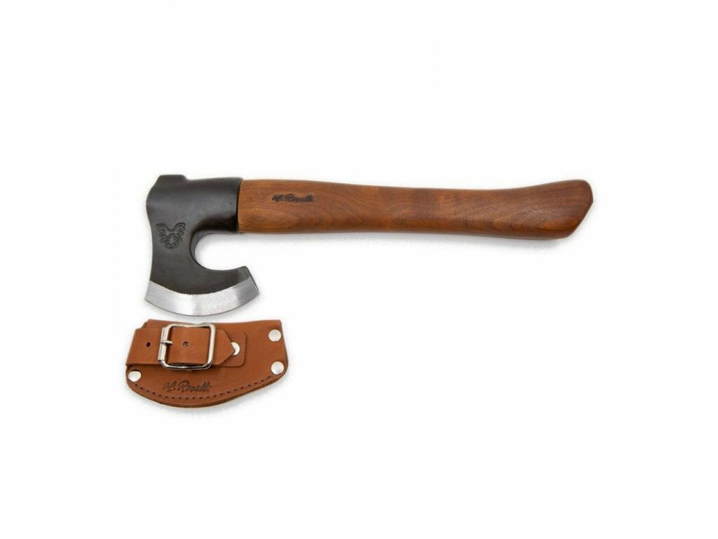 ROSELLI R860D Axe Short Handle Red Elm kempingová sekera 9 cm, drevo brest, kožené puzdro