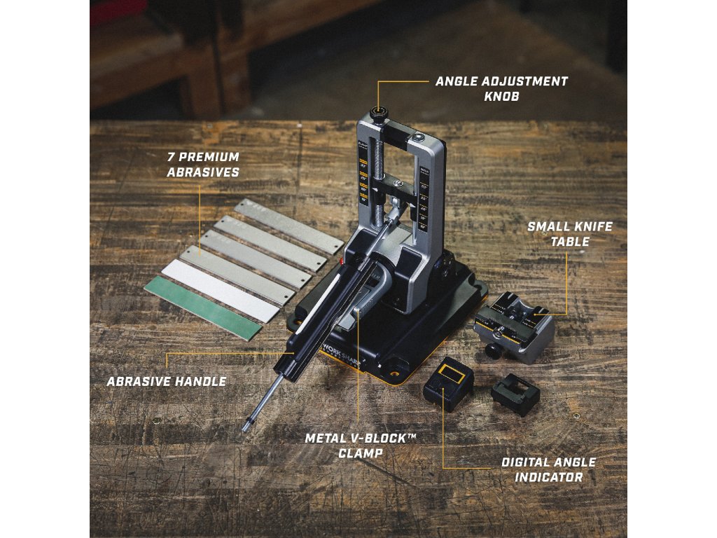 Nový model brúsky na nože Work Sharp Professional Precision Adjust Knife Sharpener (2023) je kompletný uhlovo nastaviteľný systém ostrenia nožov s kovovou konštrukciou, digitálnym indikátorom uhla a siedmimi brúsnymi zrnitosťami.